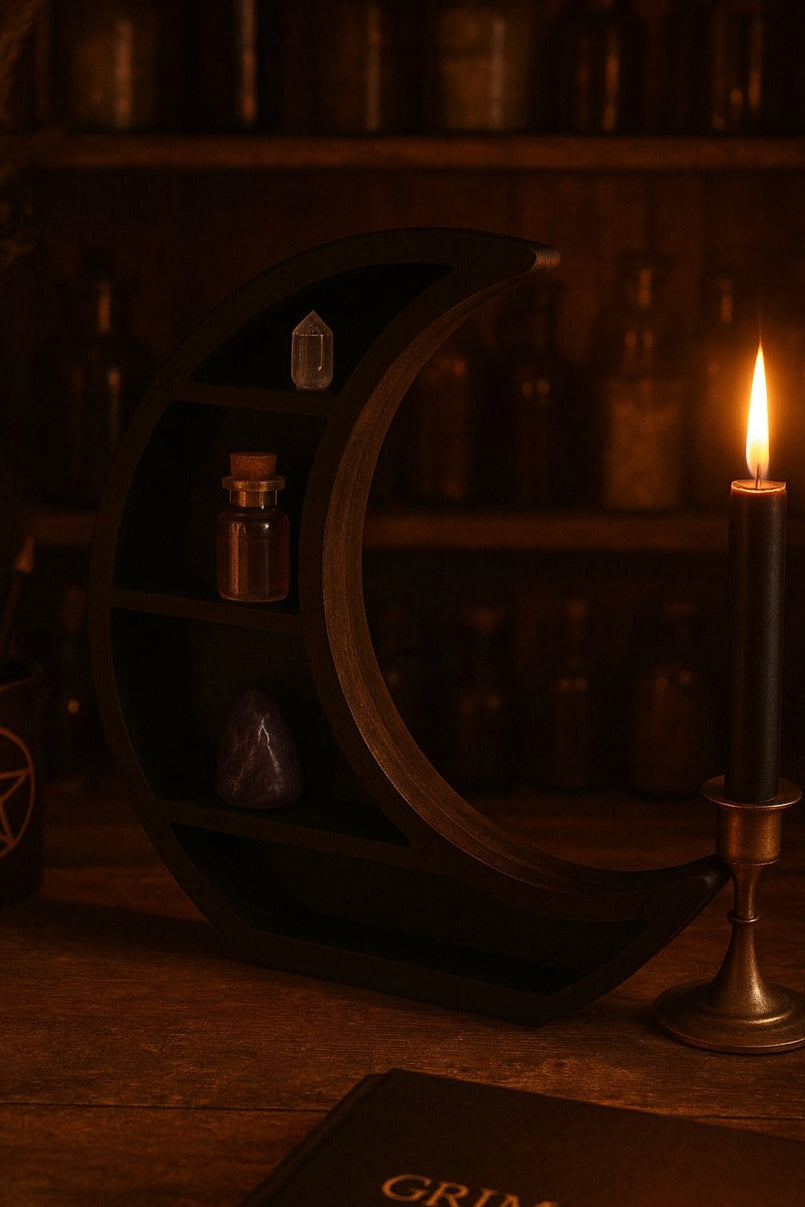 Bring a little of lunar magic into your space with this Moon Shelf. Shaped like a crescent moon, this wooden shelf is the perfect addition to your desk, bookshelf, or altar. Excellent for displaying crystals, or tiny trinkets. Ideal for those who love a bit of moonlit charm in their home