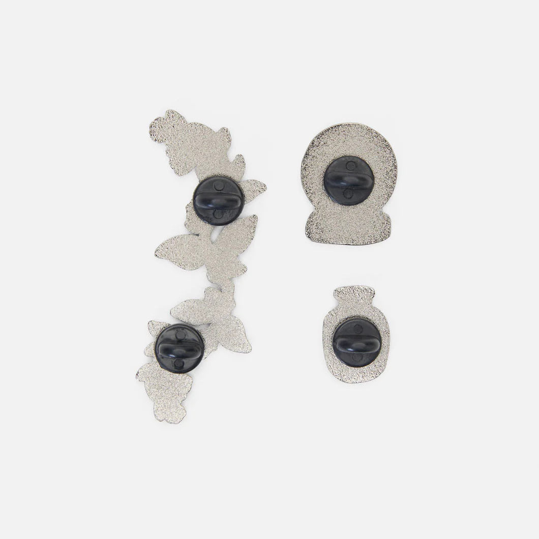 Add a touch of whimsy to your outfit with the Magical Mystique Pin Set—a charming trio of enamel pins designed to enchant. This limited-edition set features a Lily of the valley pin, perfect for adding a touch of floral flair. The tiny potion bottle brings apothecary vibes to your look, while the crystal ball pin adds a hint of mystery, ideal for channeling your inner fortune-teller! Whether worn together, separately, or shared amongst friends - these witchy pins are the perfect way to show off your unique style with a little mystical twist.